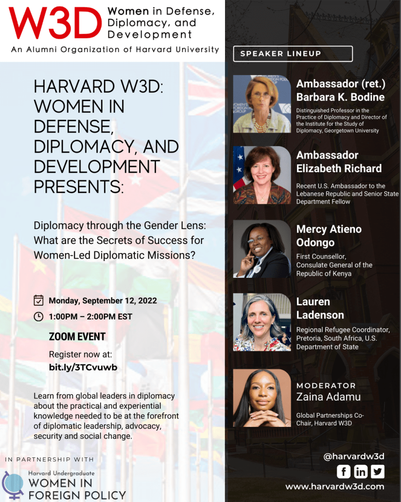 2022 | Global Partnerships Chairperson | Harvard W3D: Women in Defense, Diplomacy and Development